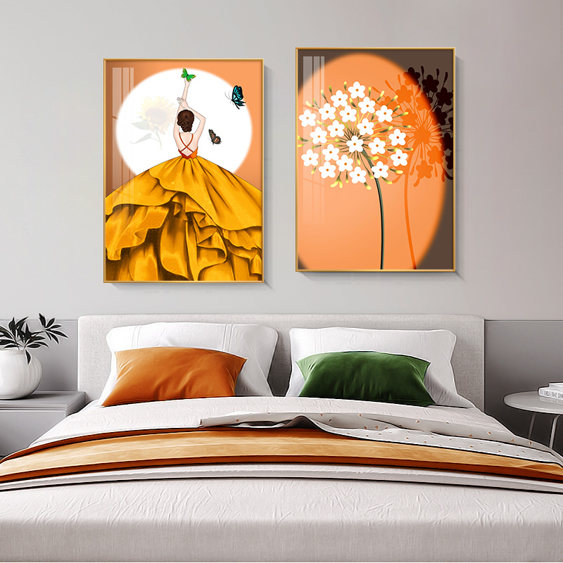 Light Extravagant Bedroom Bedside Decoration Painting Living-room Background Wall Modern Minima Feather Hanging Painting Master Bedroom Character Mural Painting