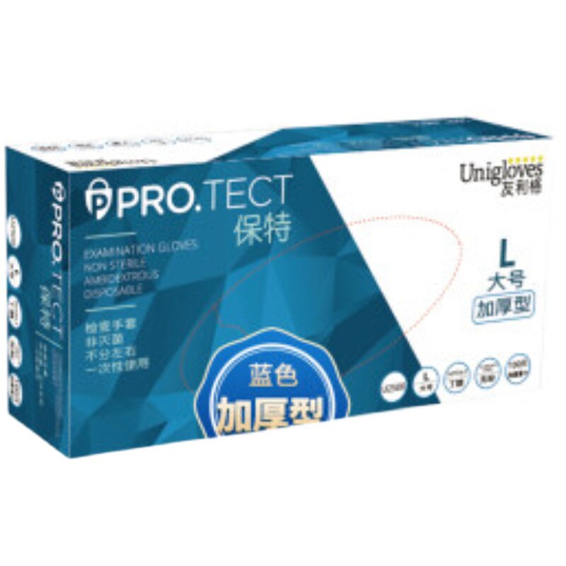 Yulig disposable gloves with powder-free whole linen blue nitrile latex check protective thickness rubber KT006