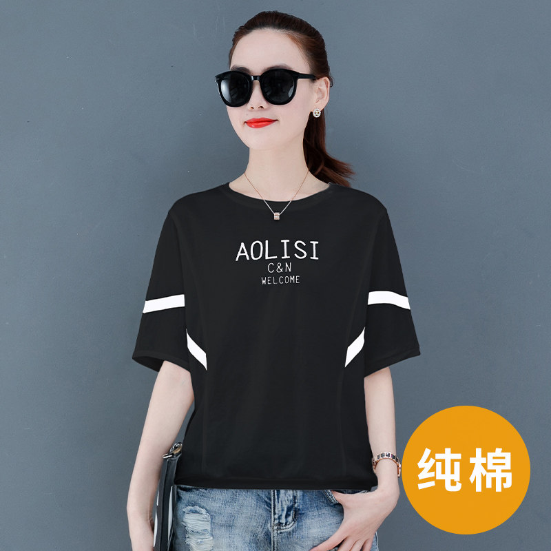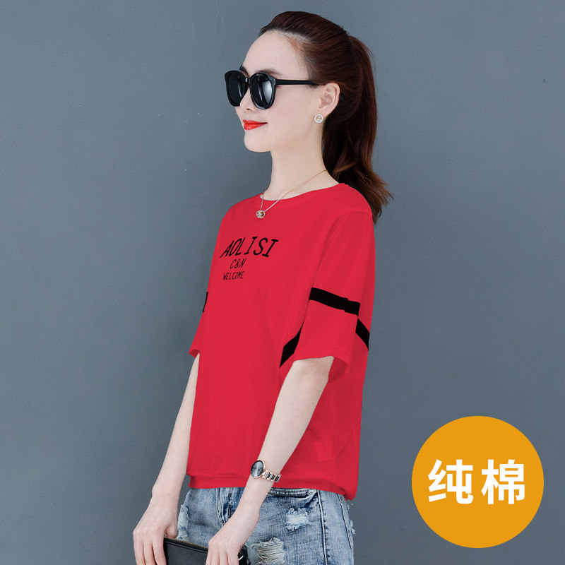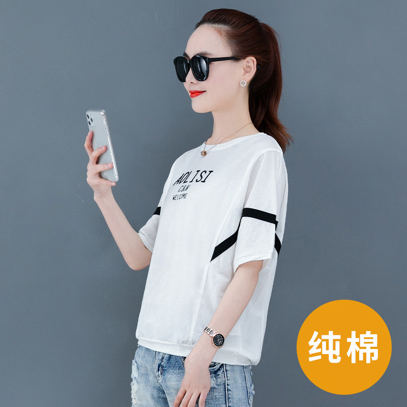 Pure cotton short sleeve t-shirt female summer 2022 new loose display slim Korean version 100 lap half sleeves on clothes foreign pins