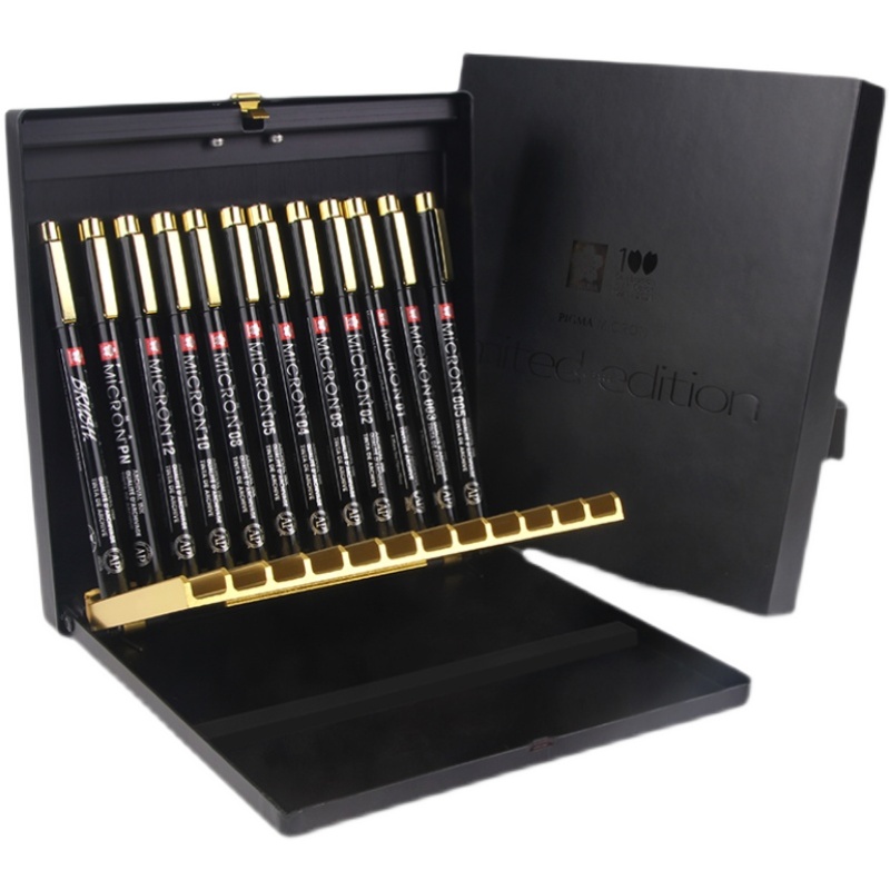 Japanese Cherry Blossom Limited Black Gold Gift Box 12 Needle Tube Pen Set Collector's Edition Design Comic Hook Line Pen Commemorative Edition