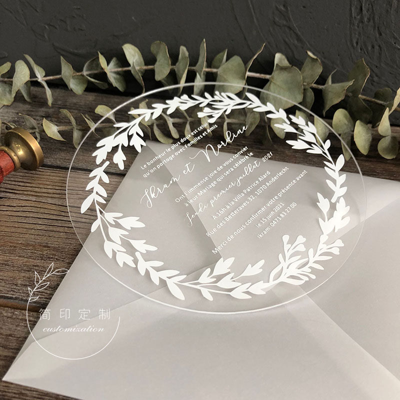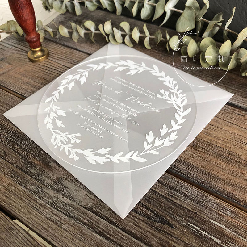 Senshi Xiaoqing leaf round transparent acrylic wedding invitation for wedding invitation