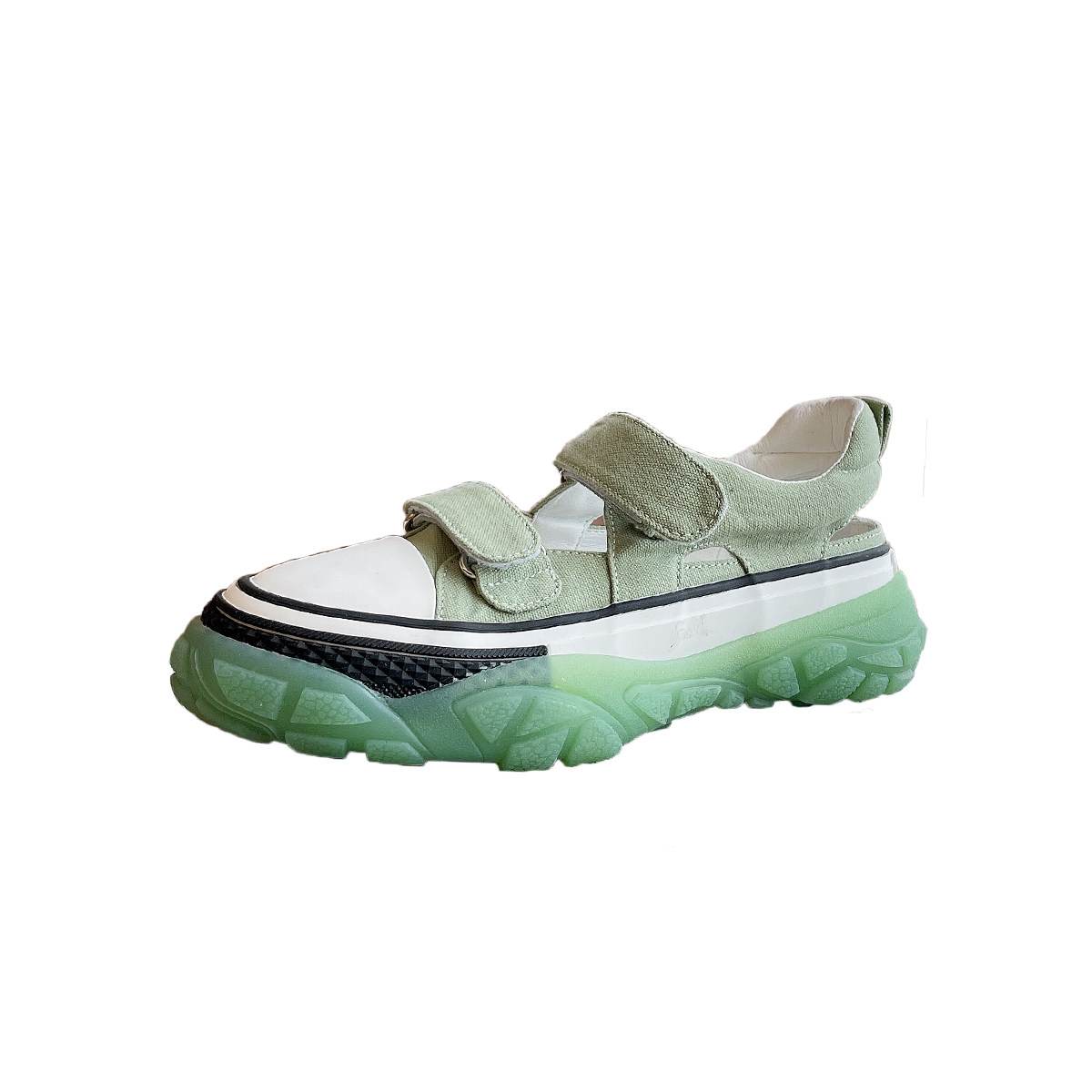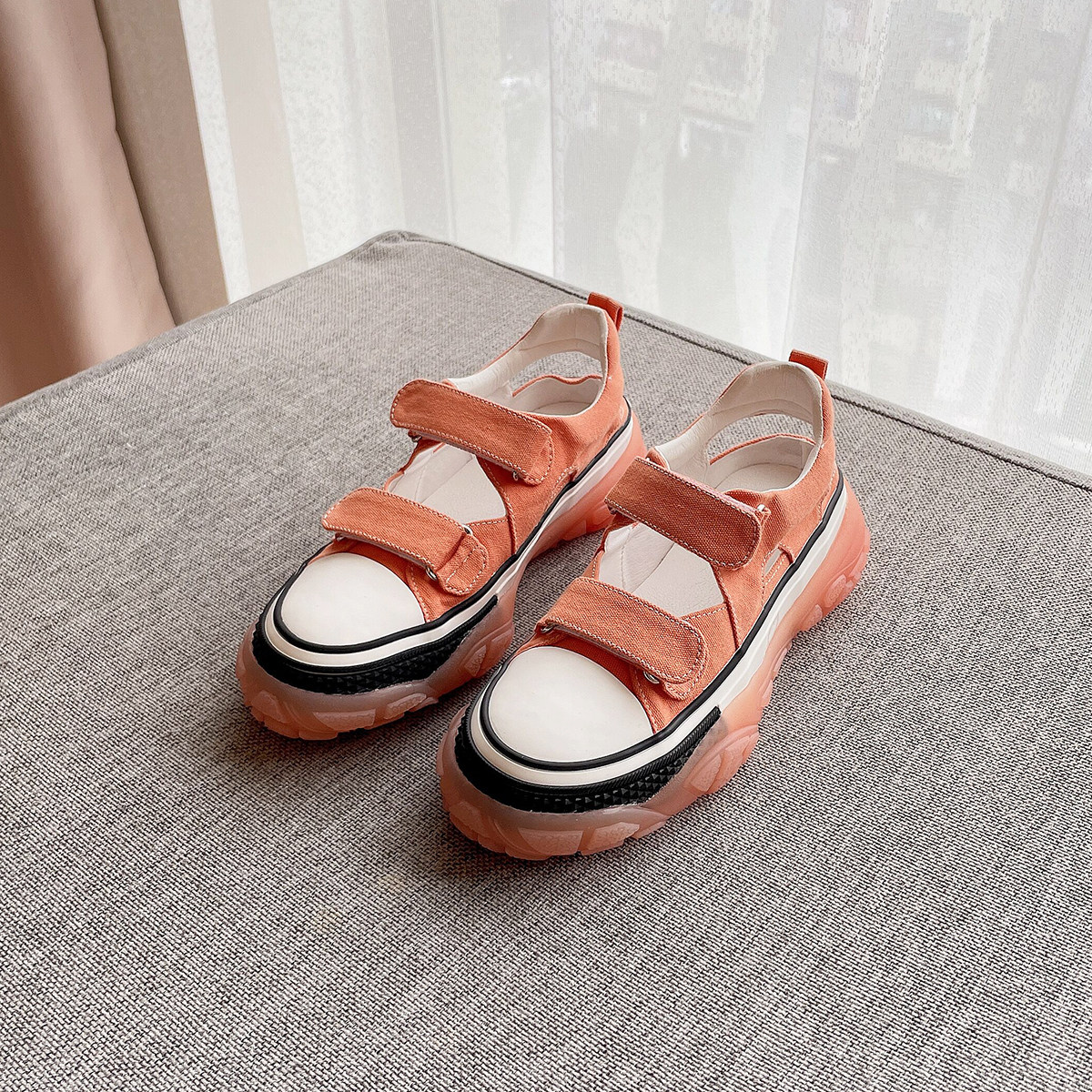 Aimeiqi European station heightened thick bottom hollow canvas sponge cake toe sandals women's 2022 summer white shoes all-match