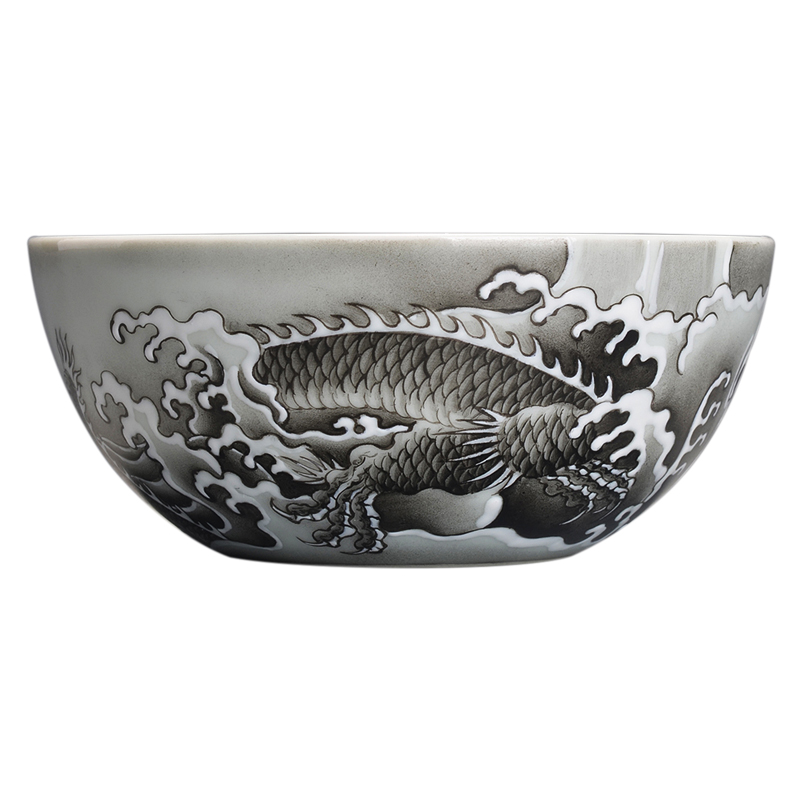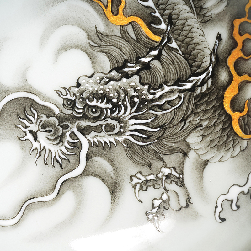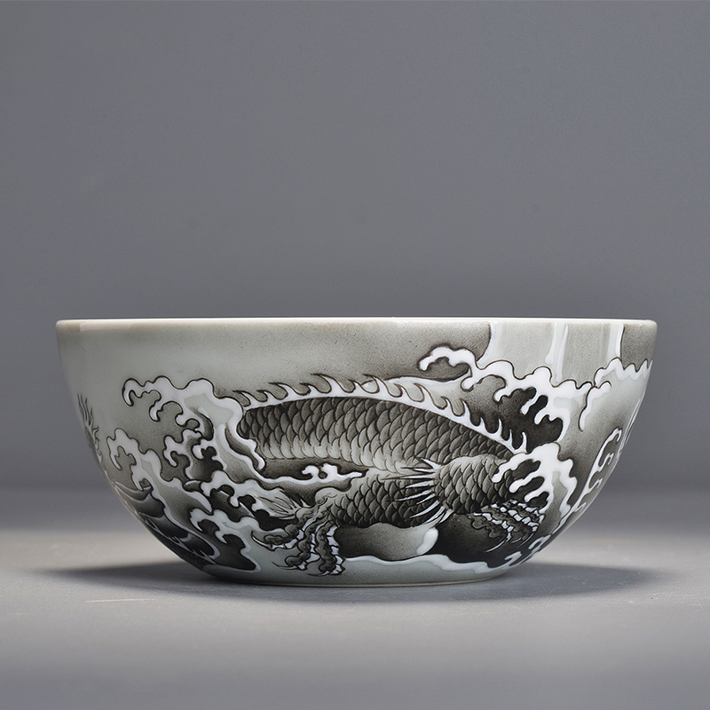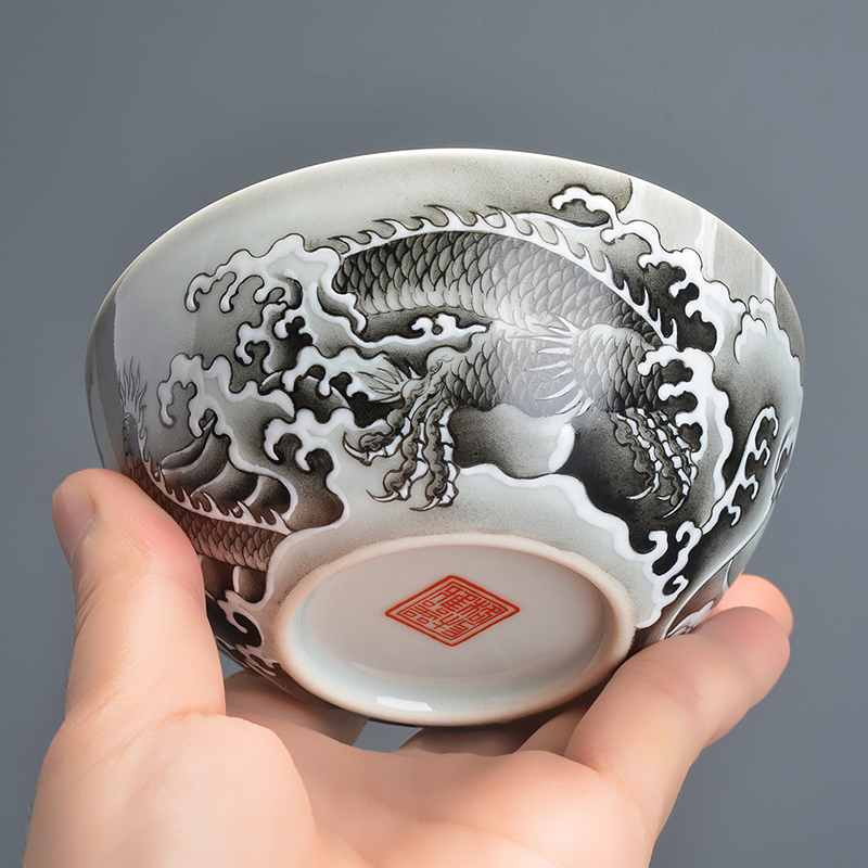 Gewu enamel color ochre ink painting gold over the wall Canglong goes out to sea lying foot cup teacup master cup kung fu tea set