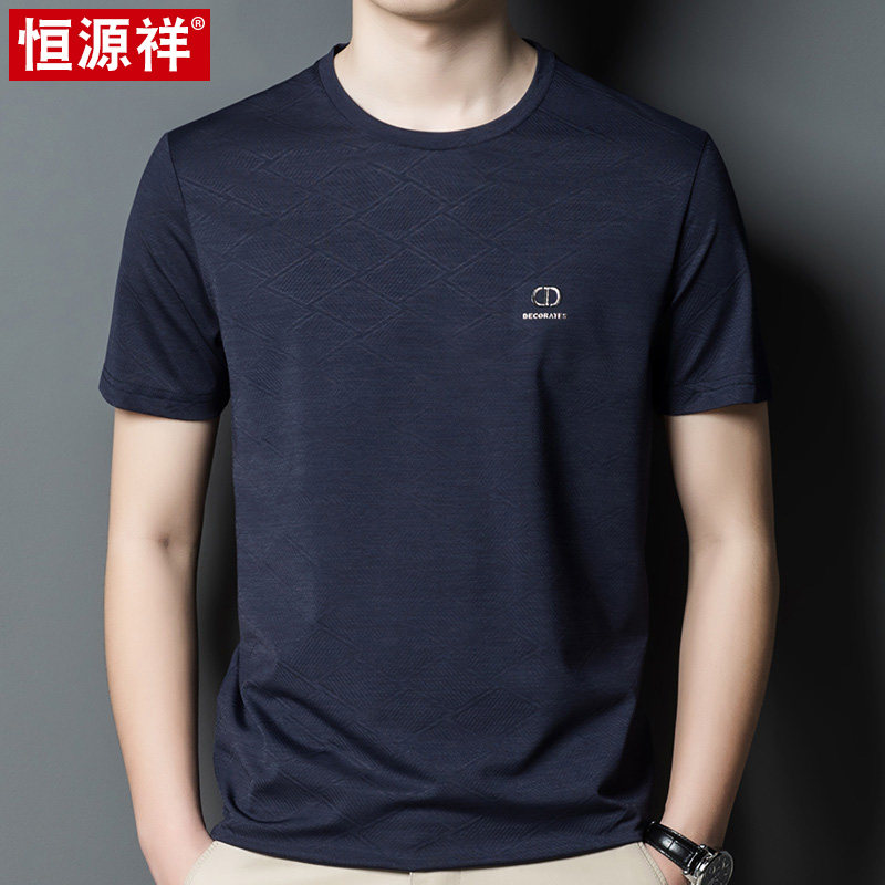 Hengyuan Xiang Summer Ice Silk Short Sleeve T-shirt Men Loose Round Collar Half Sleeve T-shirt Middle-aged Daddy Loaded Sweatshirt Blouse