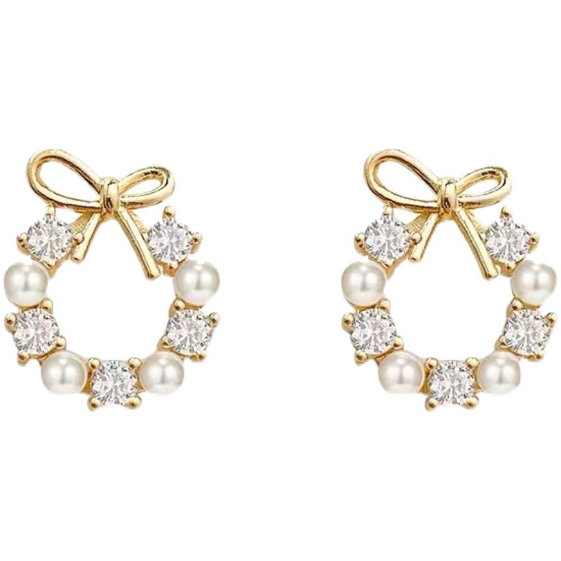 To GetRich Small Bow Stud Earrings s925 Sterling Silver Korean Temperament Sweet Pearl Net Red Earrings Women