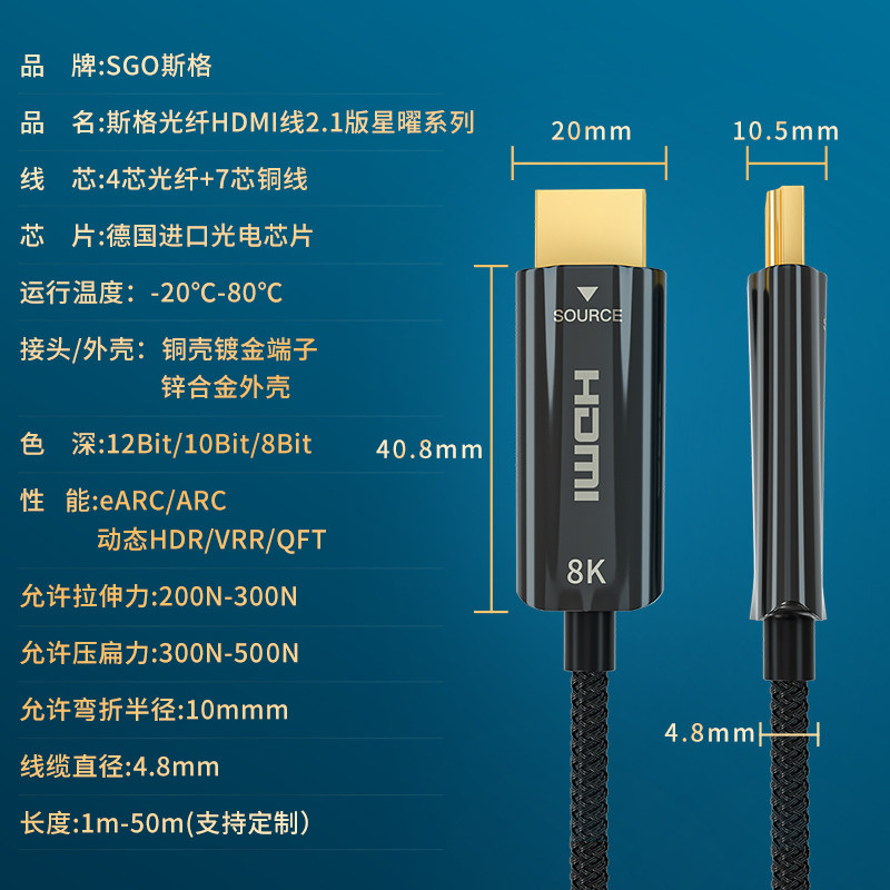 Sg fiber hdmi line 144hz connecting line 2 1 ultra clear line 8K TV 60hz 4k120hz computer electric race game projector line ps5 engineering line 10 m 20