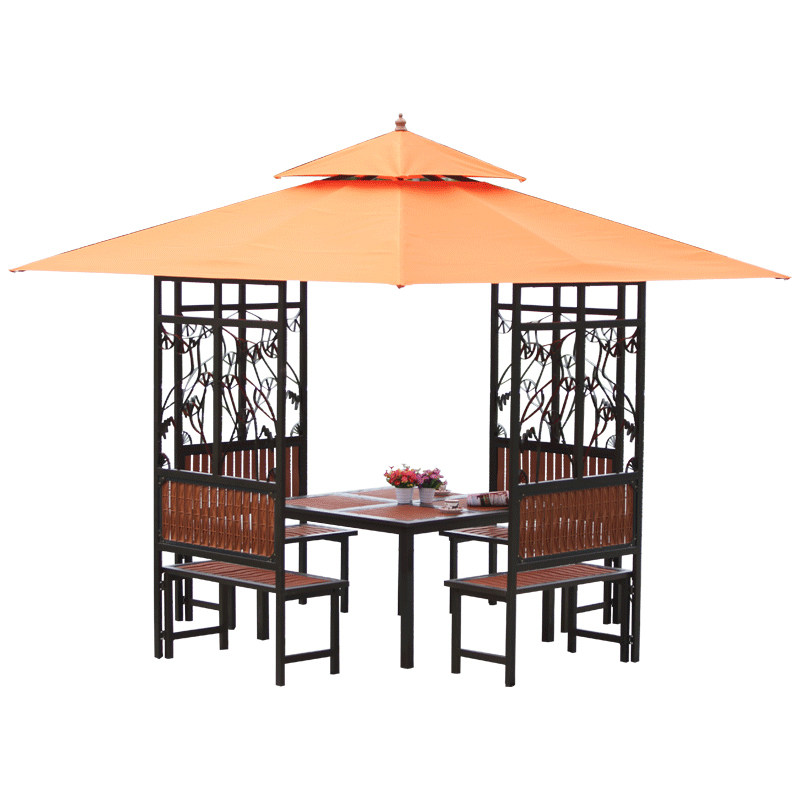(Orange orange) Iron frame flowerbird pavilion contains tables and chairs (rice white) iron frame flowery and bird pavilion contains tables and chairs (jet green) iron frame flowery and bird gazette containing tables and chairs