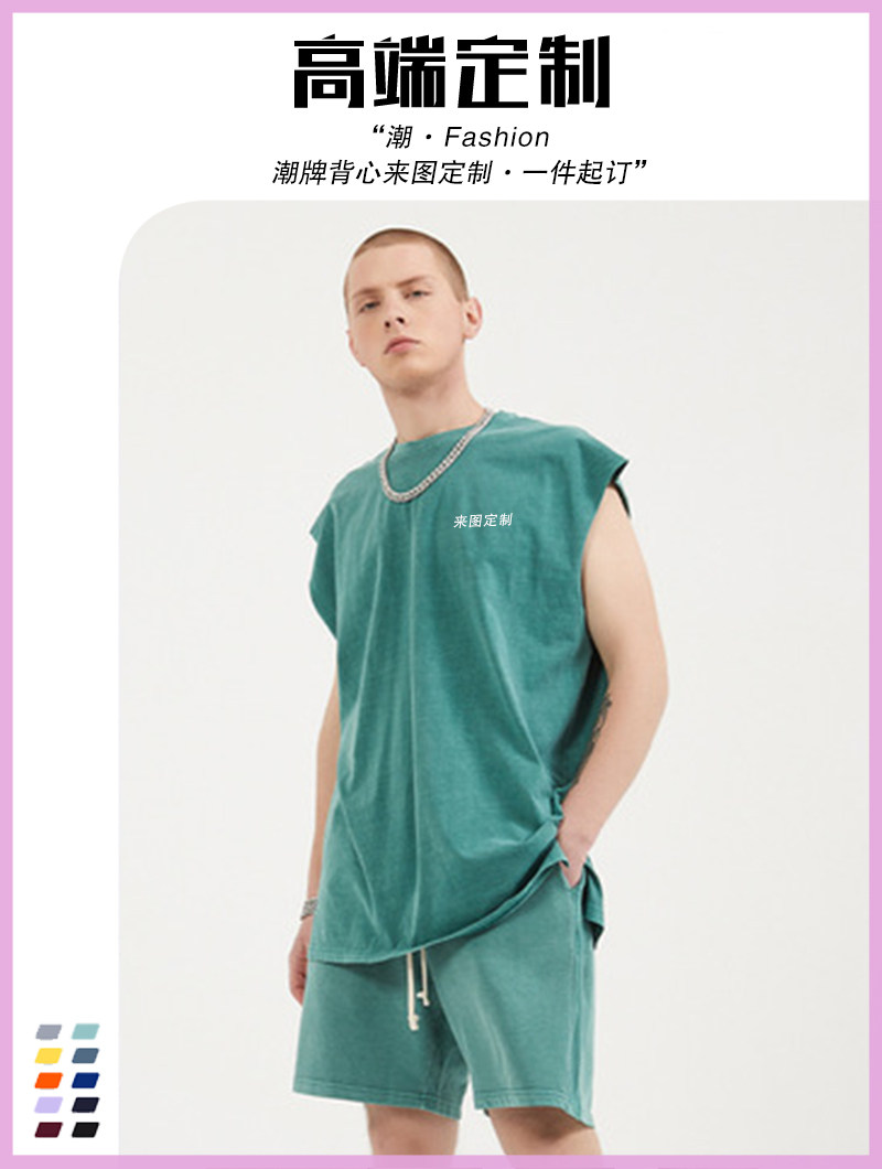 Custom vest t-shirt spring and summer European and American washed water cotton solid color vest high street tide brand sleeveless to print logo