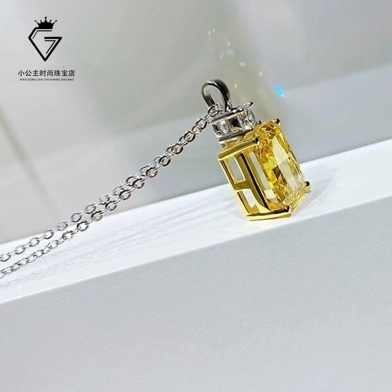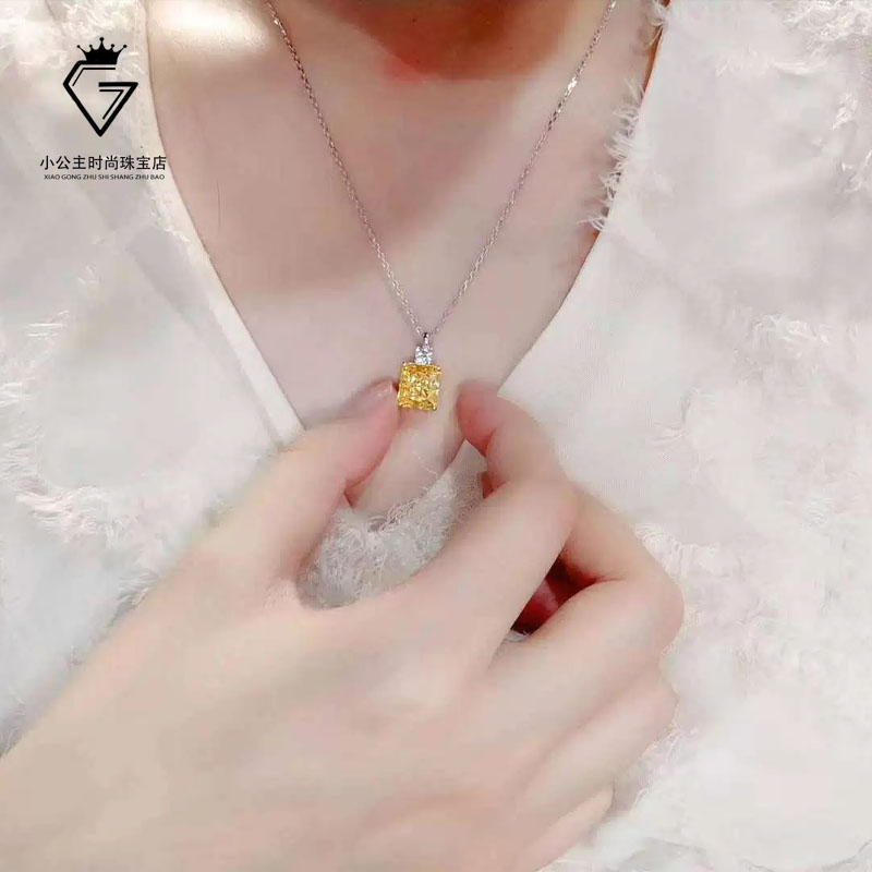 Mosanstone Necklace Woman Light Extravaganza 18K Platinum Four Paws Yellow Diamond Pendant Platinum Collarbone Chain Neck Necklace Delivery Girlfriend