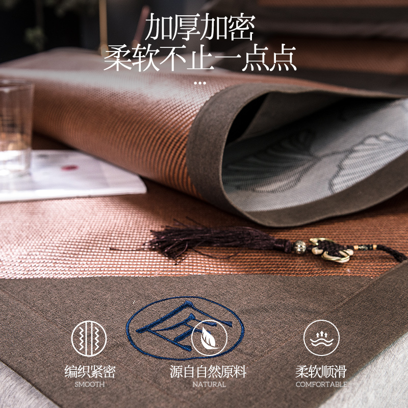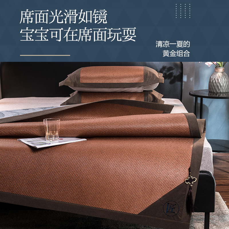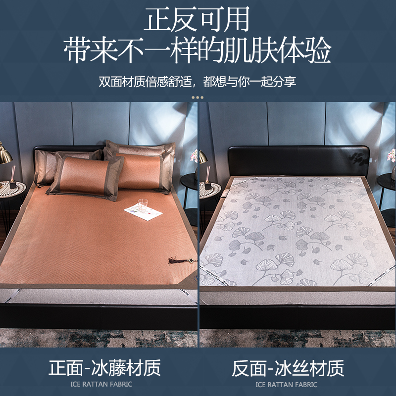Fu Anna Home Textile Ice Silk Mat 1 8m Three-piece Mat 2m Ice Rattan Mat Dual-purpose Double-sided Folding Fitted Sheet