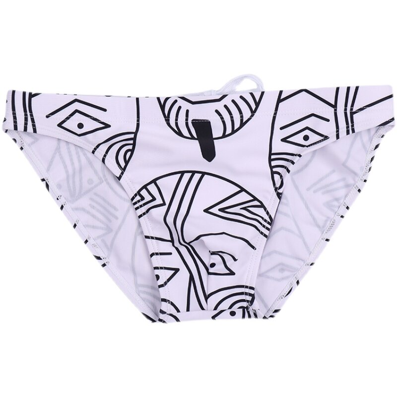 Sexy swimming trunks men's triangle fashion low waist adult white print professional swimming beach shorts tether facial makeup