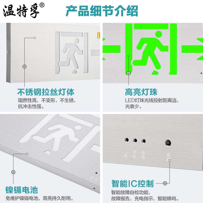 Winterfund Stainless Steel Fire Emergency Safety Exit Signage Emergency Evacuation Indicator Metal Sign Light