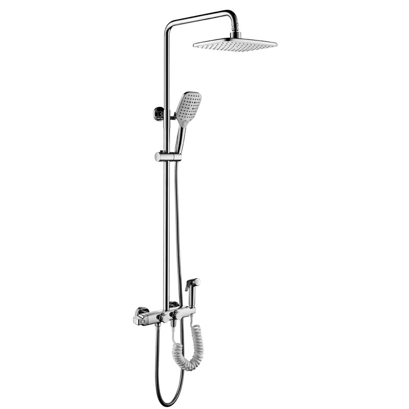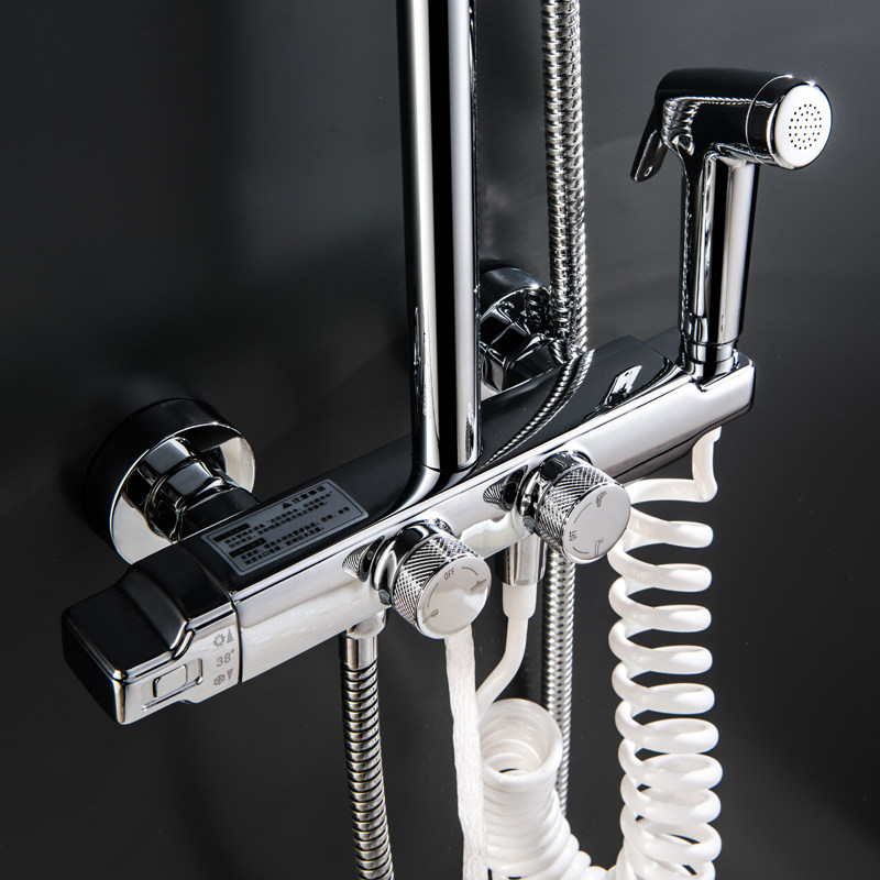 AUYYO controlled thermostatic shower kit all copper Square cold and hot water with spray gun faucet hanging wall type pressurization