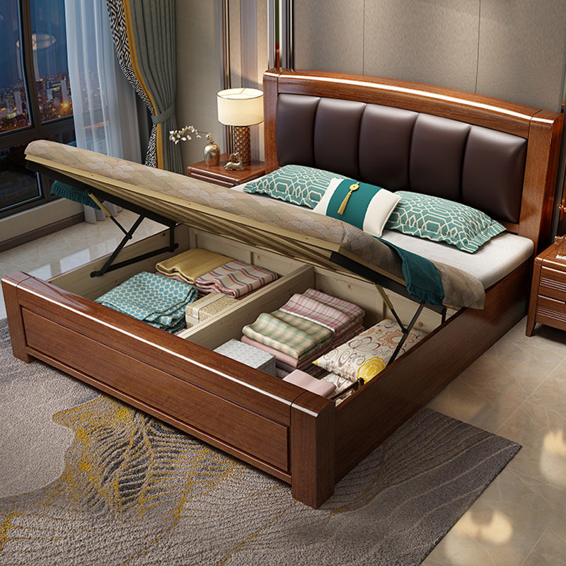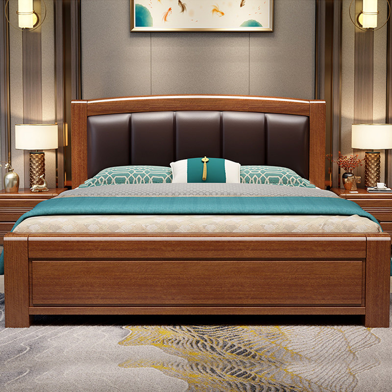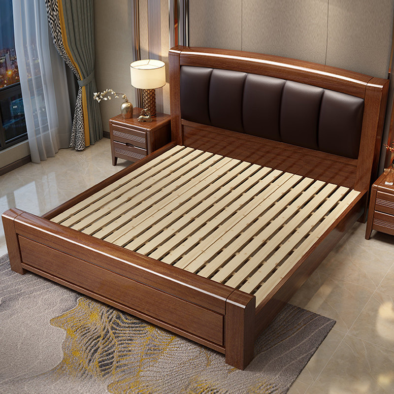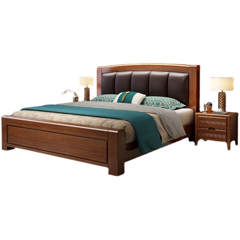 Walnut new Chinese style solid wood leather bed modern minimalist master bedroom 1 8m double bed economical factory outlet bed