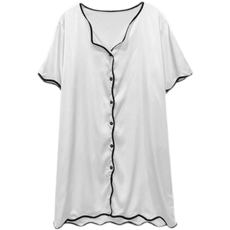 Vimirate Pyjamas Woman Summer Sexy Short Sleeves Senior Sensation Medium Long Prints Large Size True Silk Sleeping Dress Shirt Thin family clothes