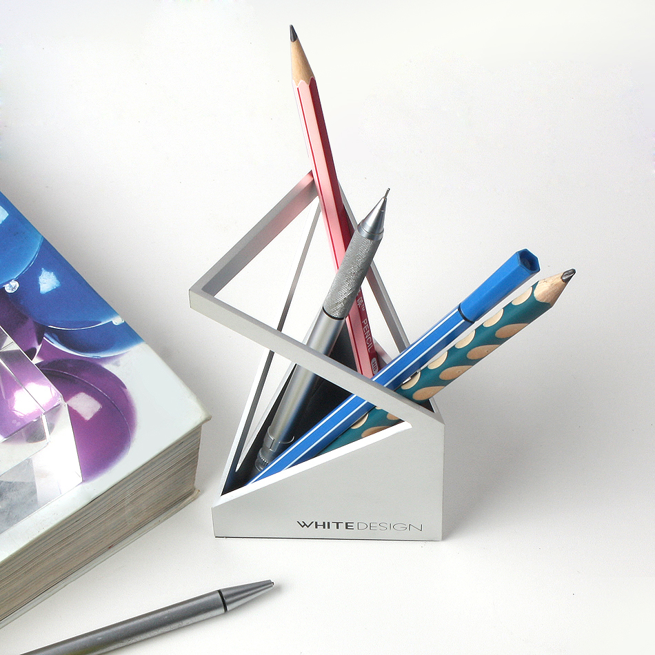 White Design Creative Metal Architectural Sense Aluminum Alloy Pen Holder Simple desktop storage high-end stationery