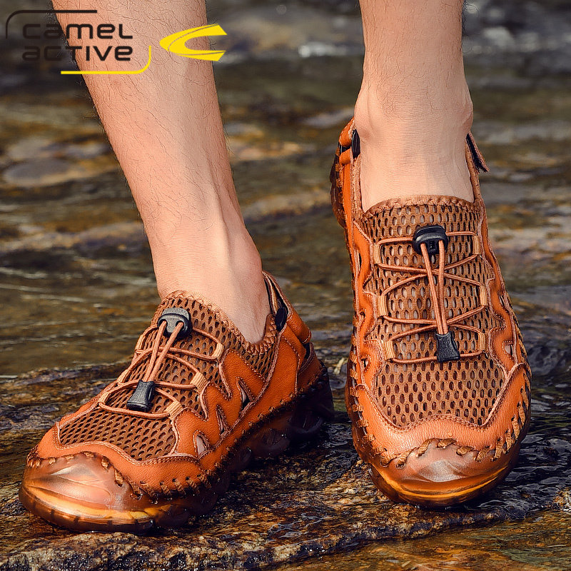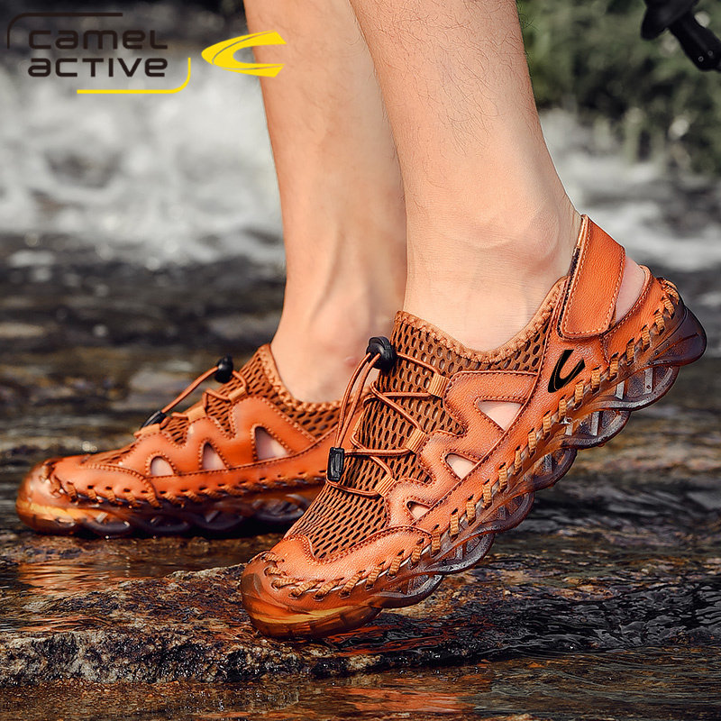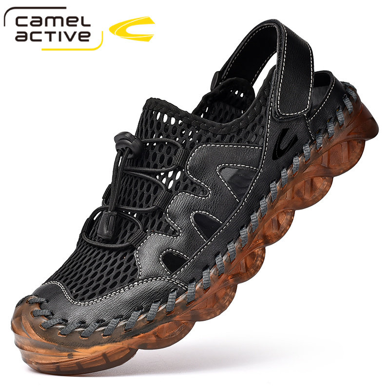German camel dynamic new summer leather men's sandals Baotou mesh soft bottom sports beach sandals men's tide