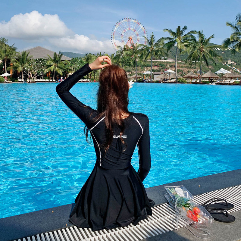 Sports swimsuit women's plus size split boxer trousers cover the belly and show thinness Soak in the hot spring student long-sleeved skirt swimsuit sunscreen