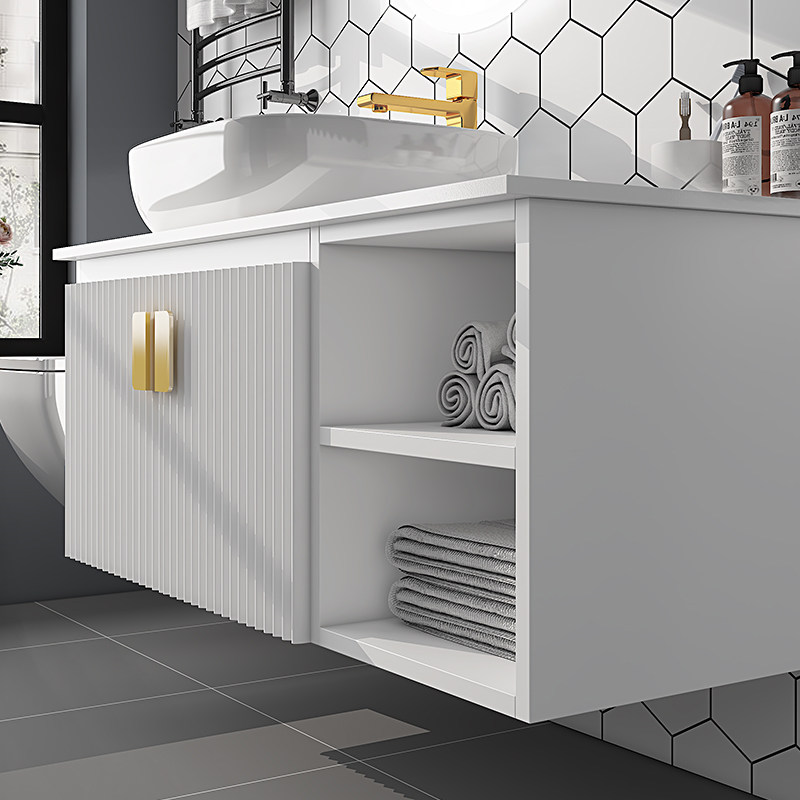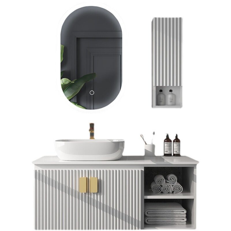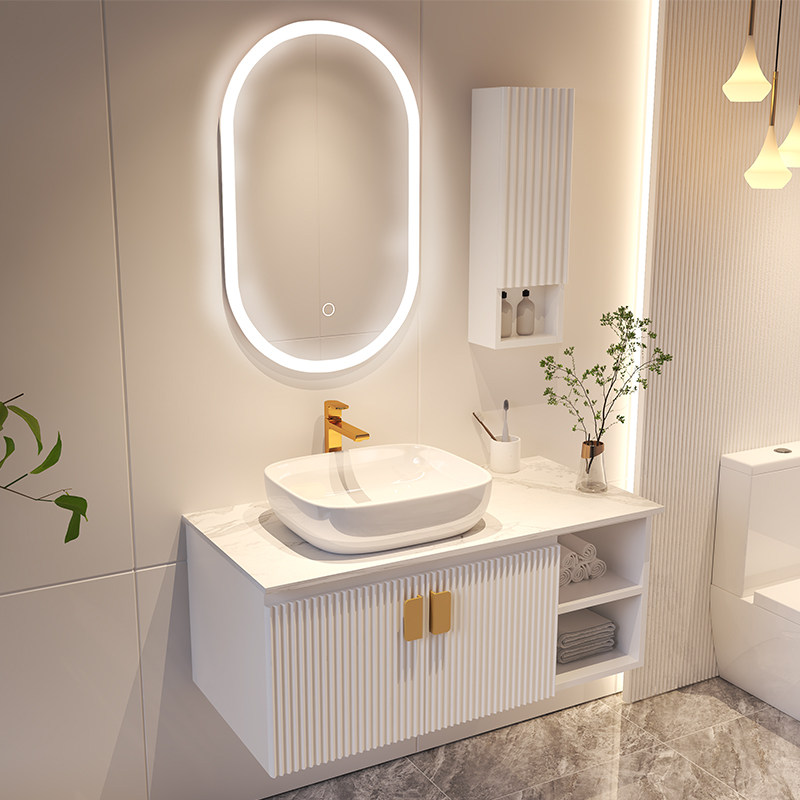 Rock plate one-piece basin Pink bathroom cabinet combination Modern simple light luxury intelligent powder room face wash hand wash sink