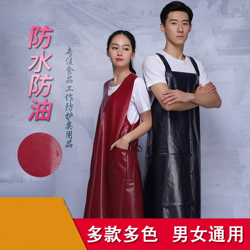 Thickened vest waterproof apron long version of men's and women's kitchen aquatic work clothes Beef tendon acid and alkali resistant oil-proof leather waist