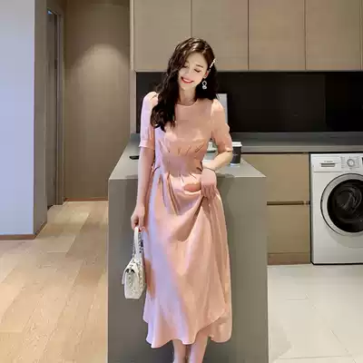 Dress 2021 summer new sweet fashion French high waist acetate silk skirt female high-end temperament long skirt
