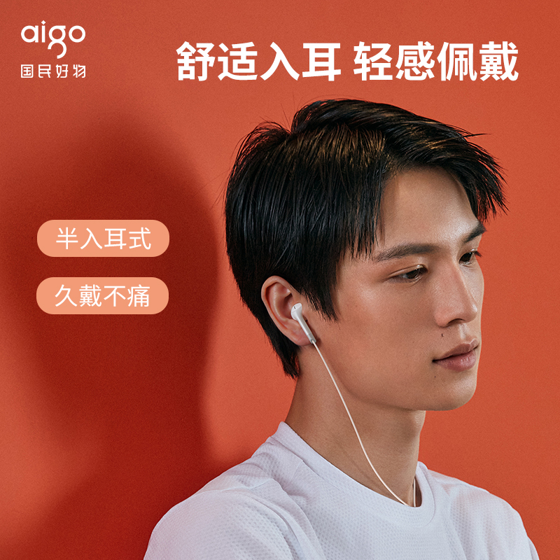 aigo Patriot music headphones A100 wired headphones in ear style heavy bass headphones ear wheat with machetes control large moving circles without distortion universal mobile phone computer Android Apple applicable headphones