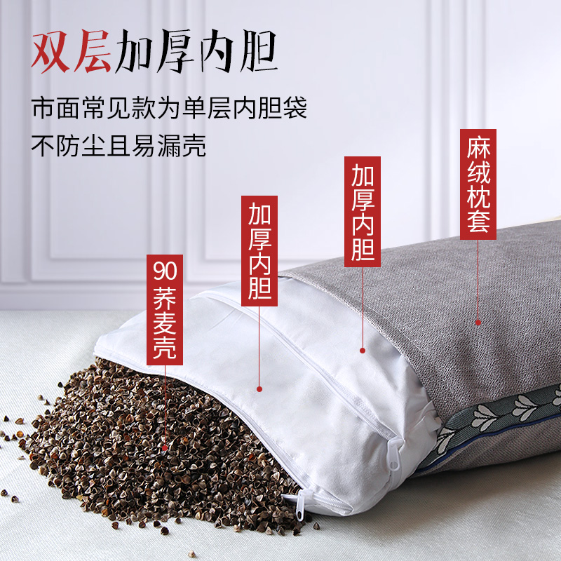 Full buckwheat pillow single buckwheat skin pillow core adult cervical spine protection help sleep Qiao Mai shell home men and women with pillowcase