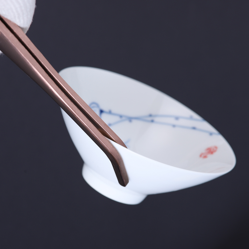 Metal thickness stainless steel tea clamp wooden tweezers made tea cup clamps kung fu tea ceremony accessories