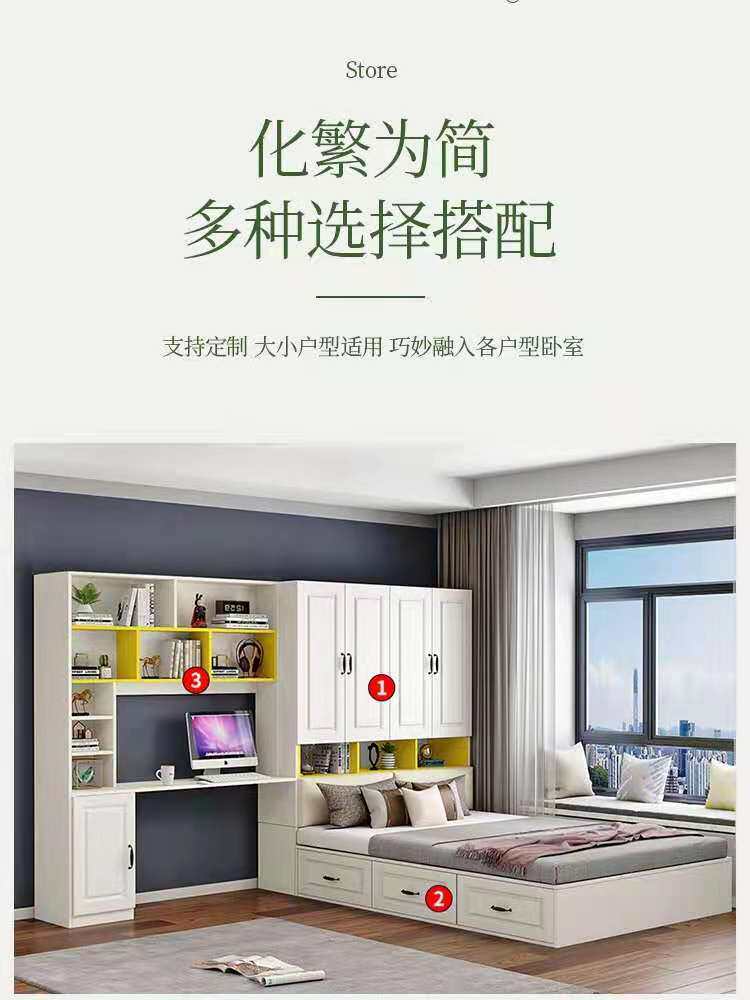Solid wood board simple modern tatami wardrobe bed one small apartment bedroom bed children's bed multi-functional storage bed