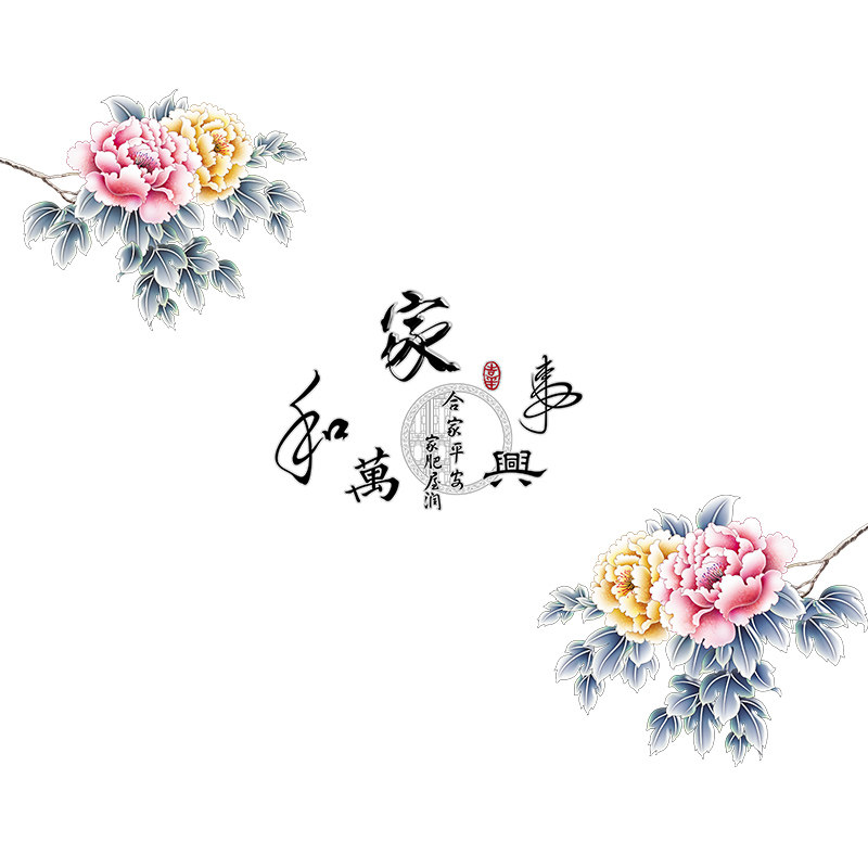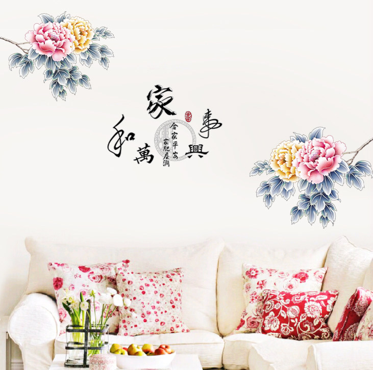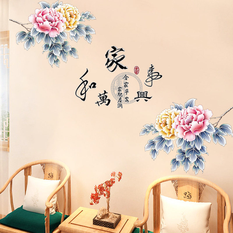 Simple modern Chinese living room sofa TV background wall stickers creative room layout bedroom bedside peony stickers
