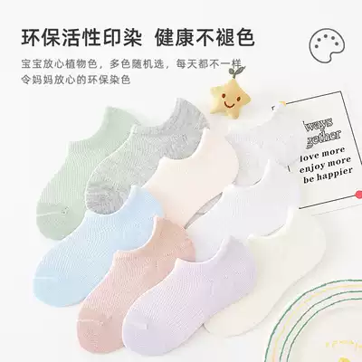 Children's socks summer thin boys short cotton same color girls baby middle and large children's mesh breathable white invisible socks