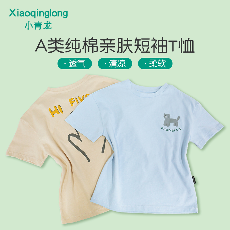 Xiao Qinglong summer new child pure cotton T-shirt boys and girls in the Big Child Han Edition tide