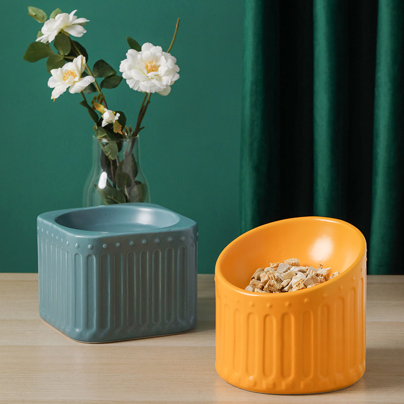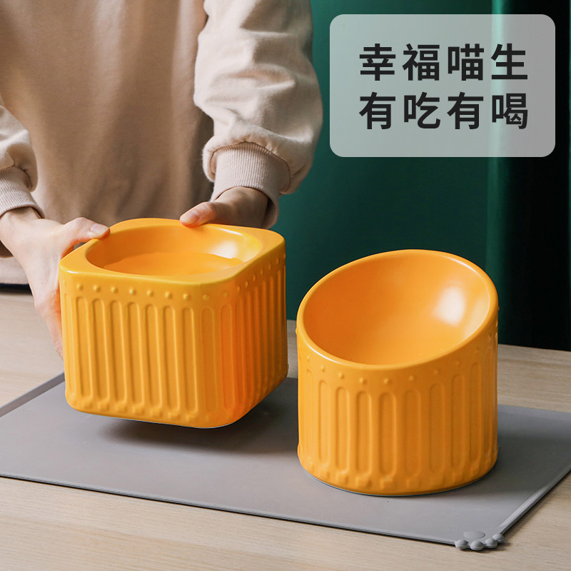 Cat bowl ceramic protection cervical vertebra oblique mouth high foot anti-overturning dog cat food basin to eat and drink pet cat food basin