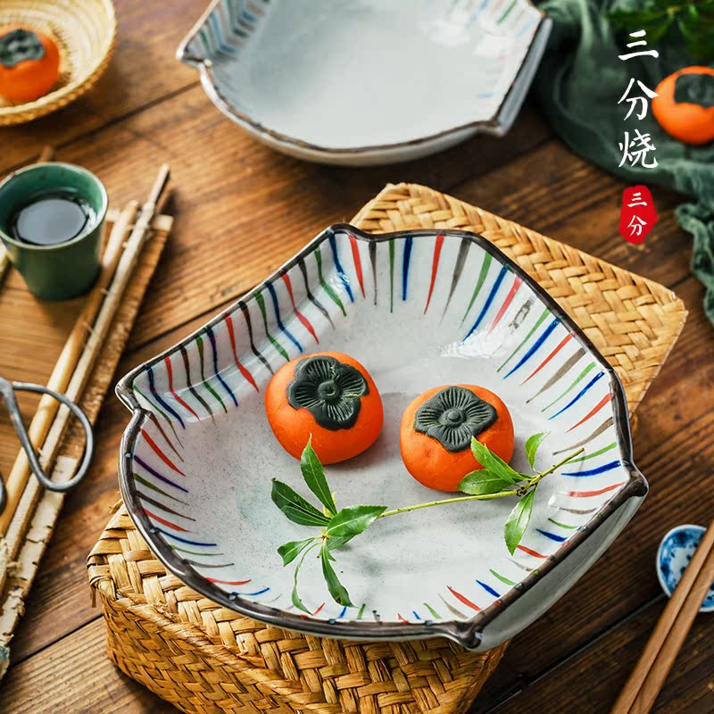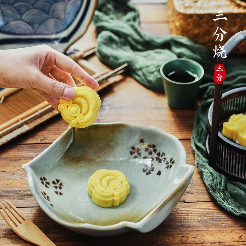 Three-point Japanese vintage special-shaped dish bowl Creative ceramic fruit bowl Dim sum salad bowl Specialty restaurant cutlery