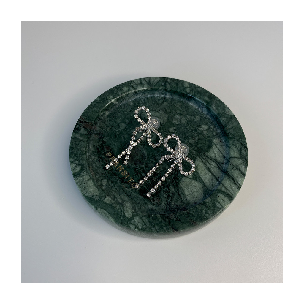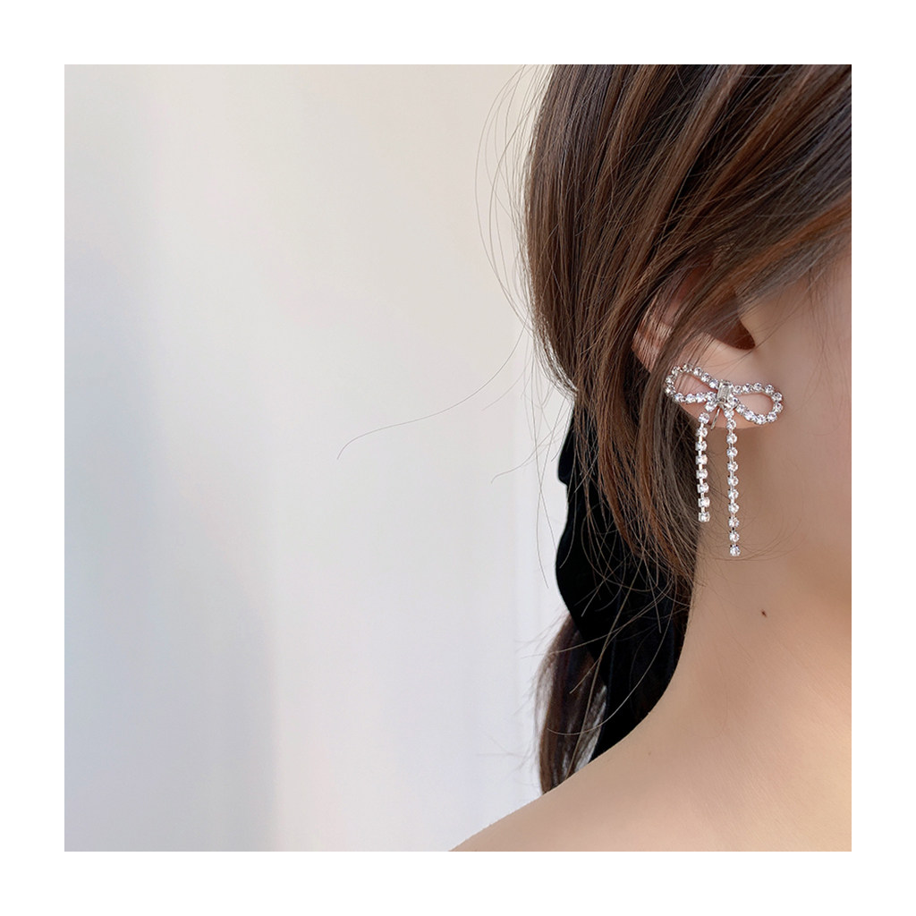(W Dear) Original Rhinestone Bow Mosquito Incense Plate Ear Clips Without Pierced Earrings Temperament Long Tassel Earrings