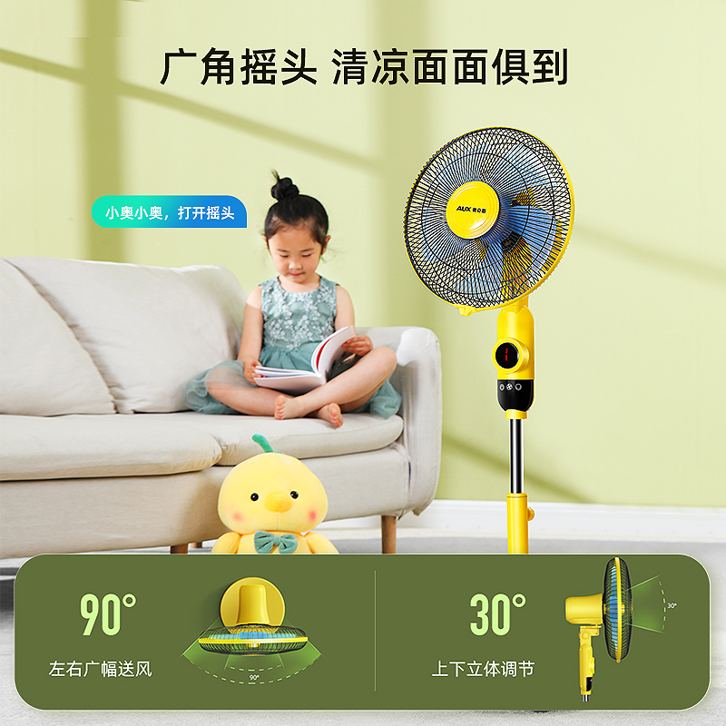 Oaks electric fan home floor fan smart voice portable vertical timing shaking head children's fan