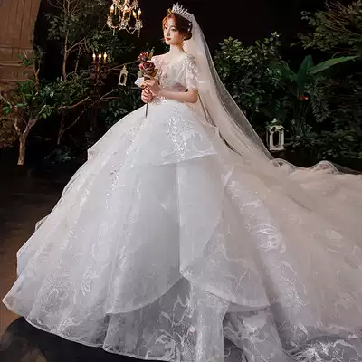 French heavy industry main wedding dress 2021 new bride shoulder luxury retro premium tailing big size small man