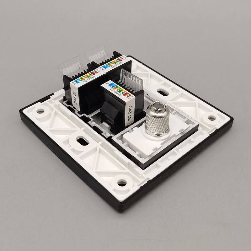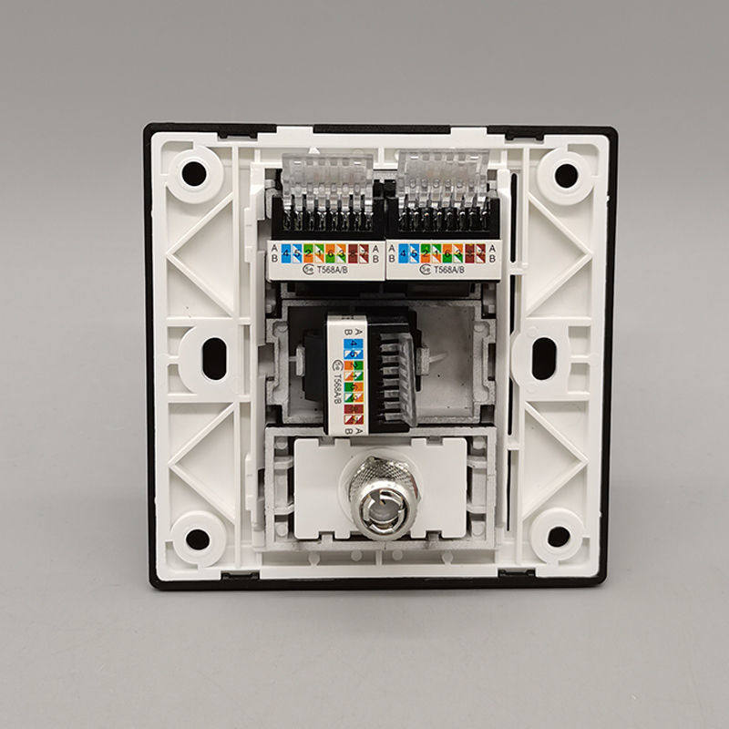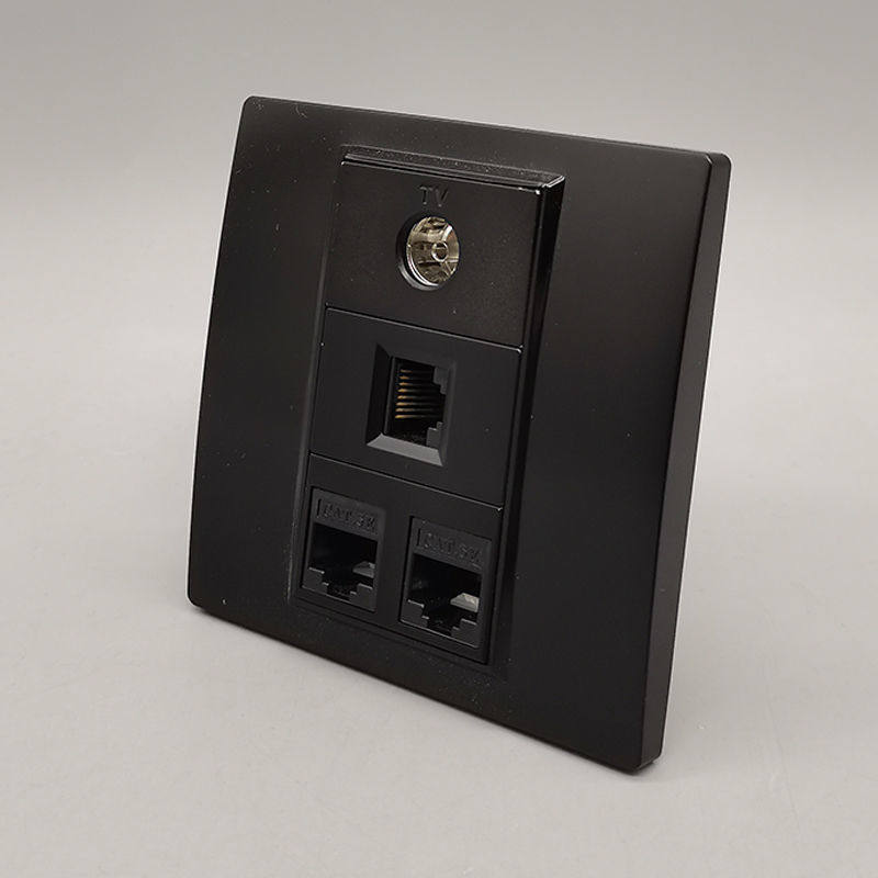 Type 86 black three category RJ45 network route TV panel CAT6 computer broadband computer wall socket