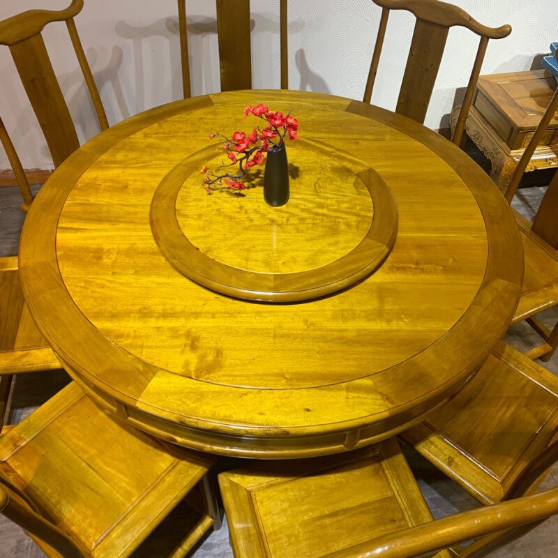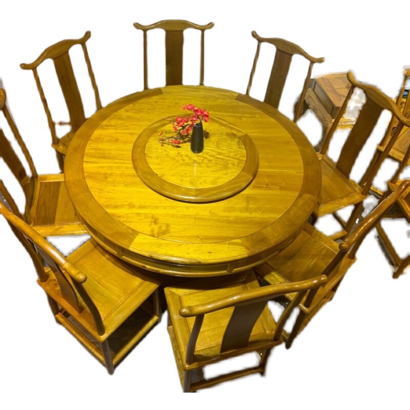 Small Leaf Zhen Nankin Silk Nan Wood Round Table Nine Pieces Manufacturers Direct Sale
