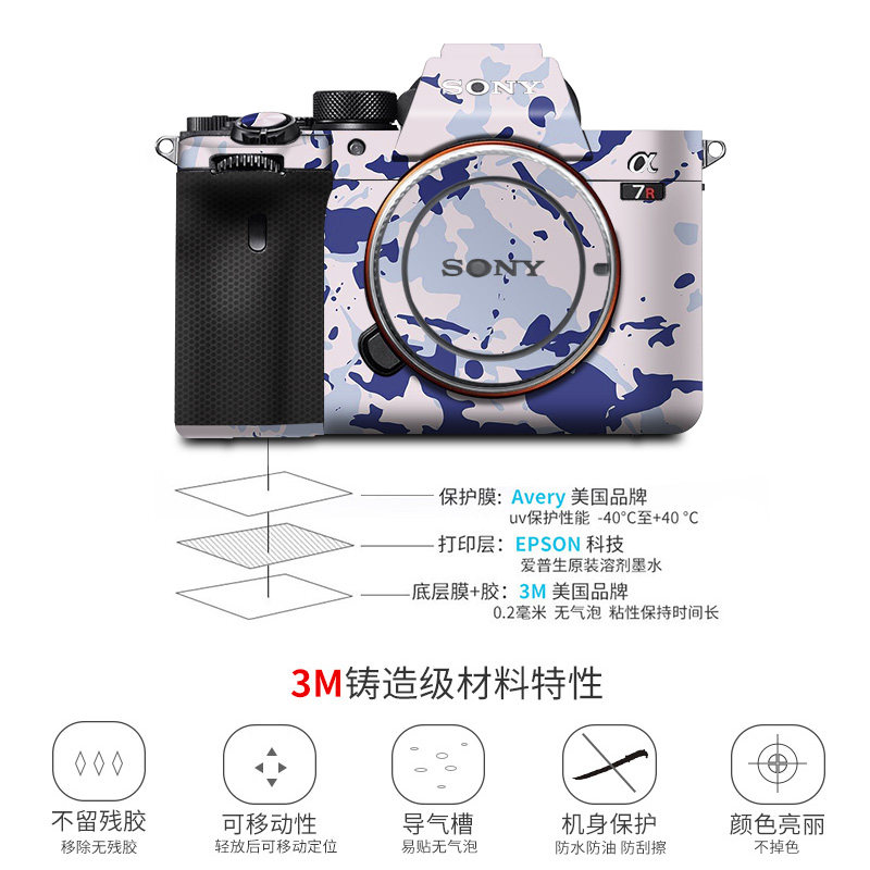 Suitable for Sony A7R4 camera sticker A7R4A camouflage body all-pack protective film SONY A7R4 lens protective film camera decoration 3m protective film accessories for Diy custom shell film