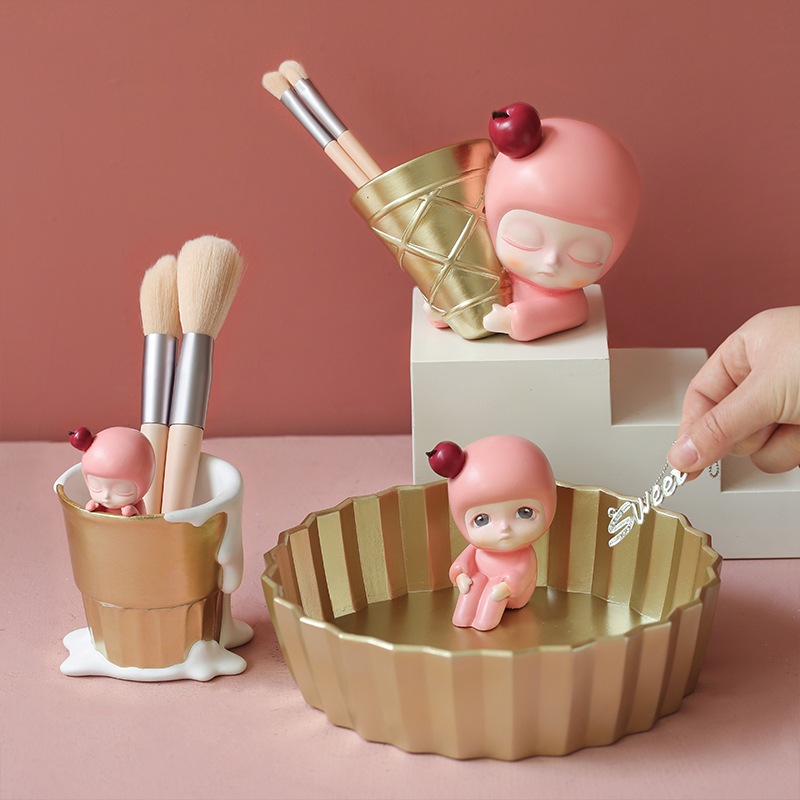 Small Sweetness Creative School Girl Makeup Brush Pen Holder Containing Box Office Desktop Slant Inserted Child Cute Pendulum