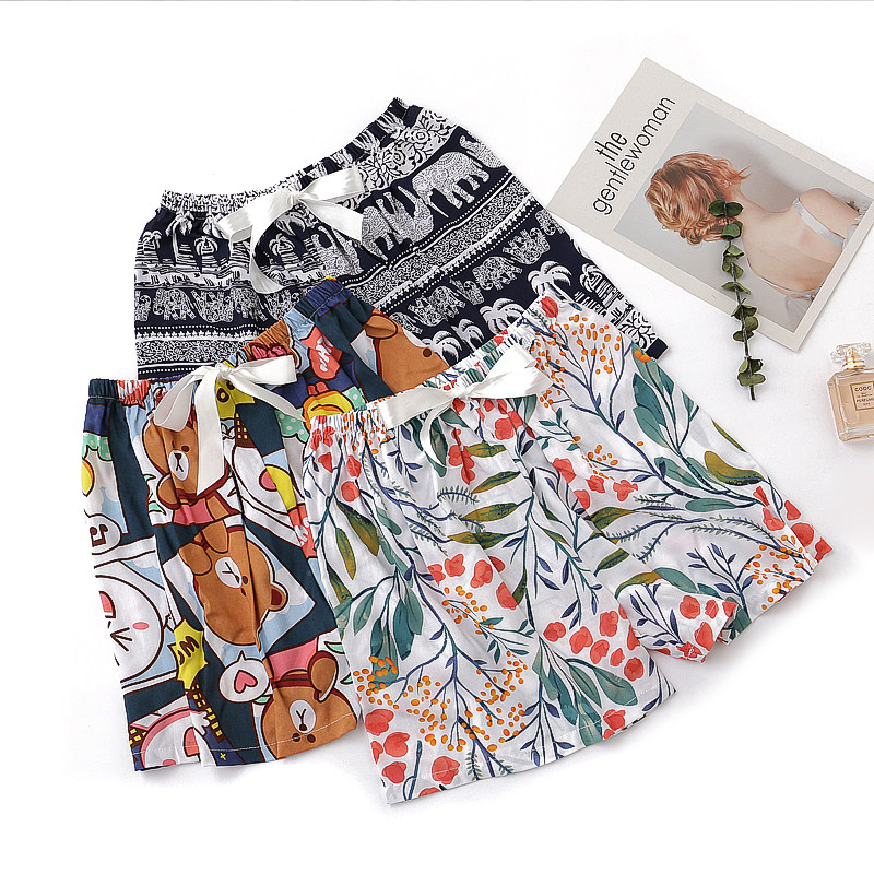 Cotton silk pyjamas women's summer shorts net red thin wide leg pants artificial cotton can wear cotton single pants large size household pants