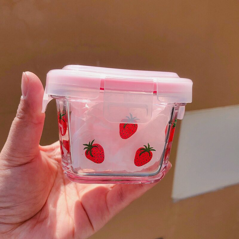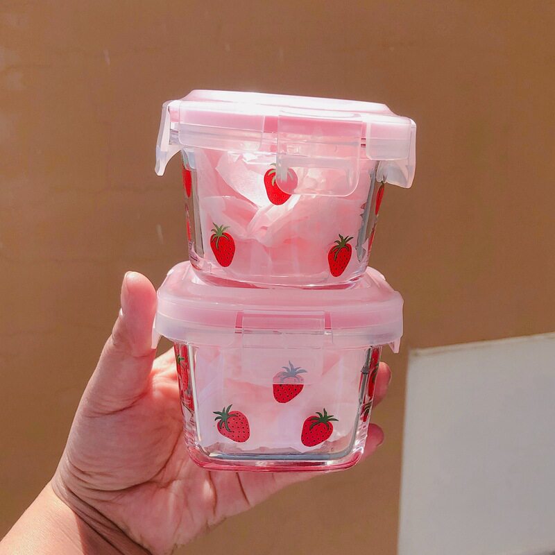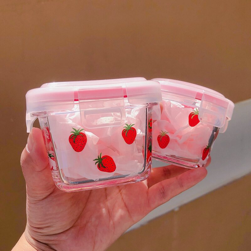 Korean ins style strawberry mini sealed box cute girl heart glass snack box bird's nest peach gum fresh-keeping box