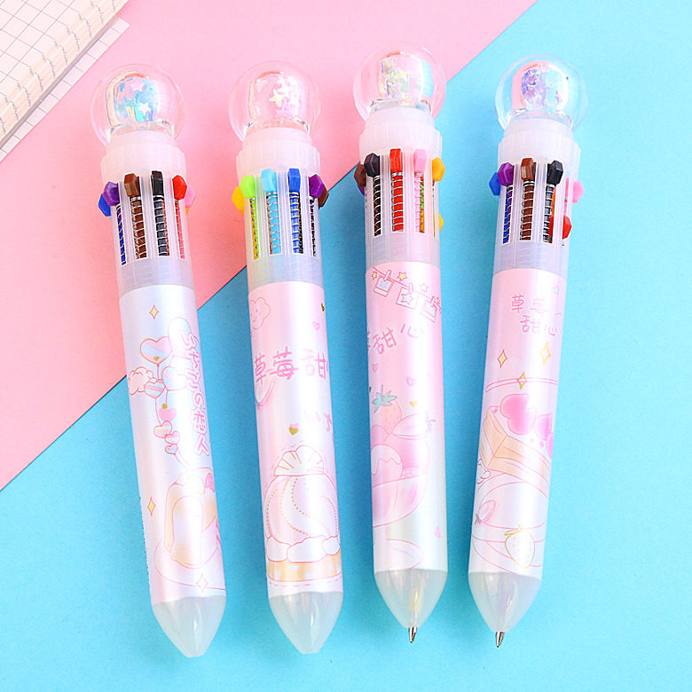 Strawberry Sweetheart Press Ball-point Pen Coloring Pen Signature Pen Creative Cute Girl Baby Painted Pen 10 Color Oil Pen