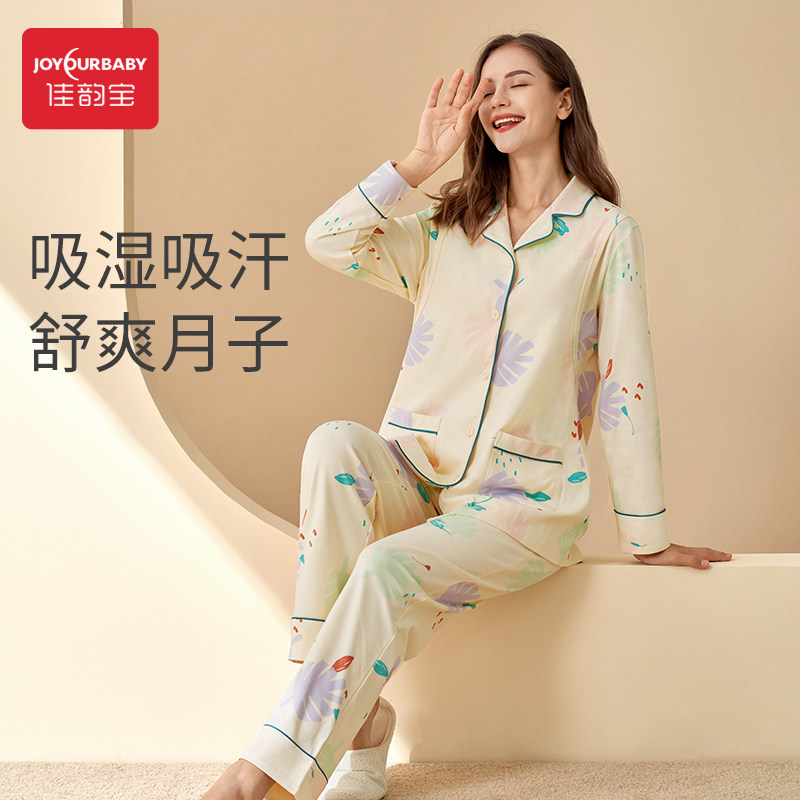 Jia Yun Bao Confinement Dress Pregnant Women Pajamas Summer Thin Postpartum Home Wear Two Spring and Autumn Cotton Gauze Nursing Clothes