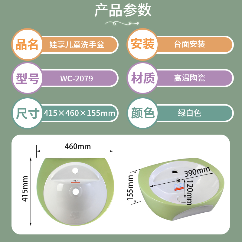 Baby WC-2079 Green Ceramic Children's Washbasin Basin Kids Wash basin Early Education Center Baby Washbasin