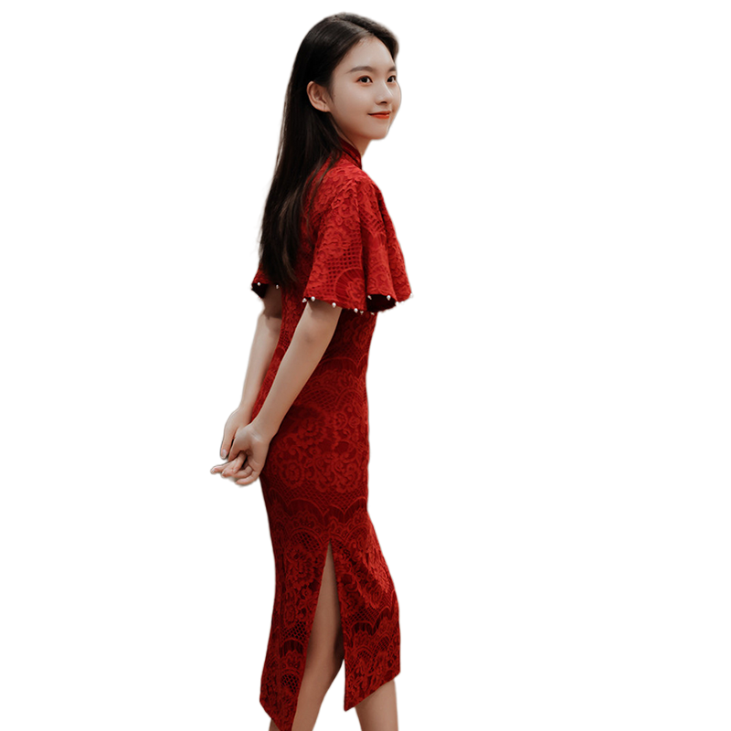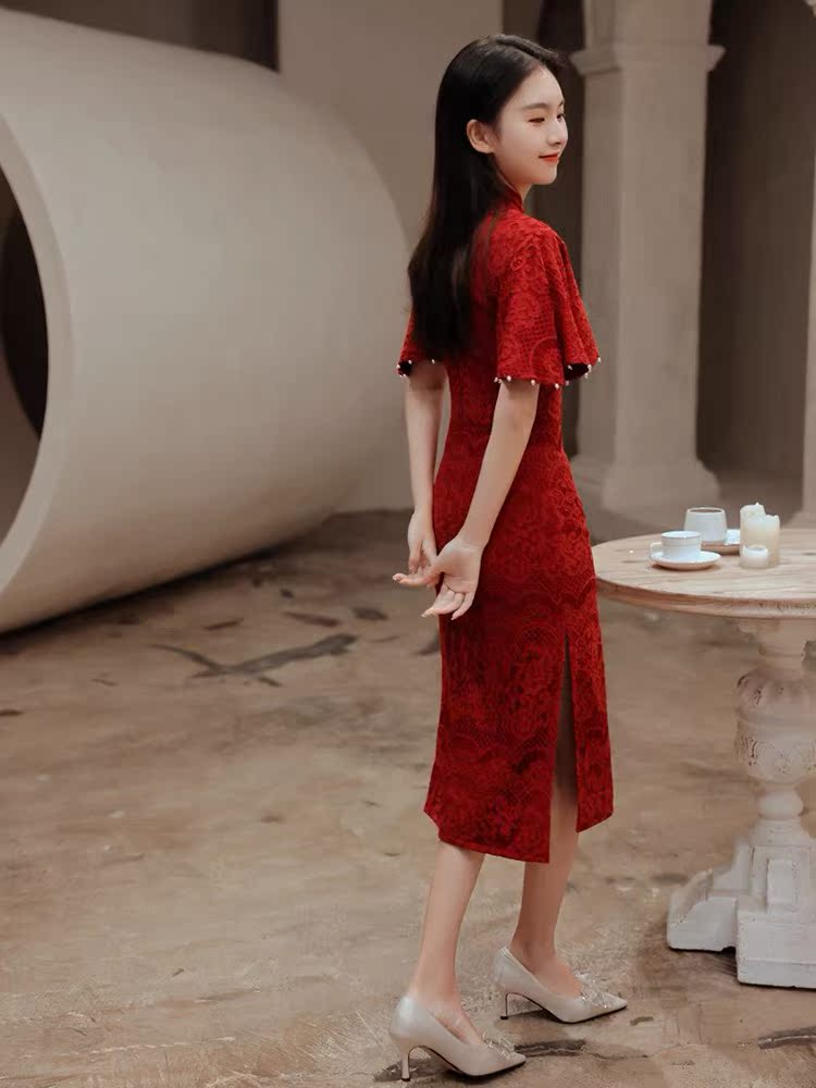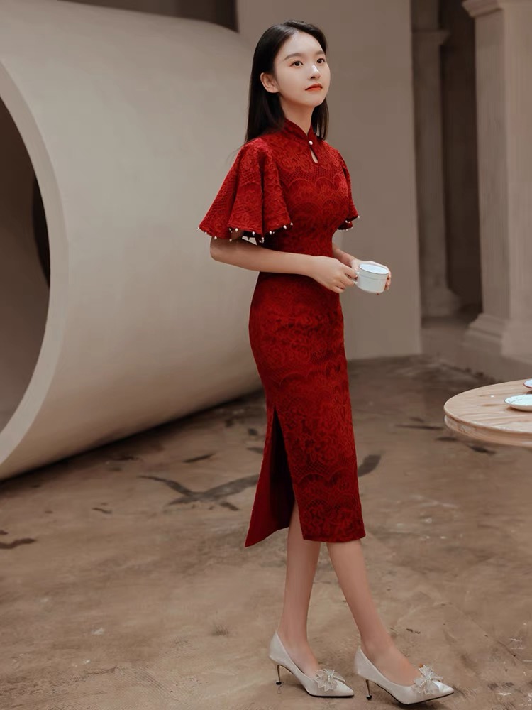 Inverted large sleeve qipao toast with 2021 new lace banquets covered with arms back to the bride's wedding wedding gown