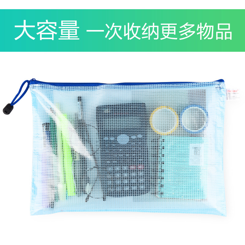 Chunya Water - resistant thickness grid a4 zipper file bag students exam materials large capacity transparent archive pack multicolor