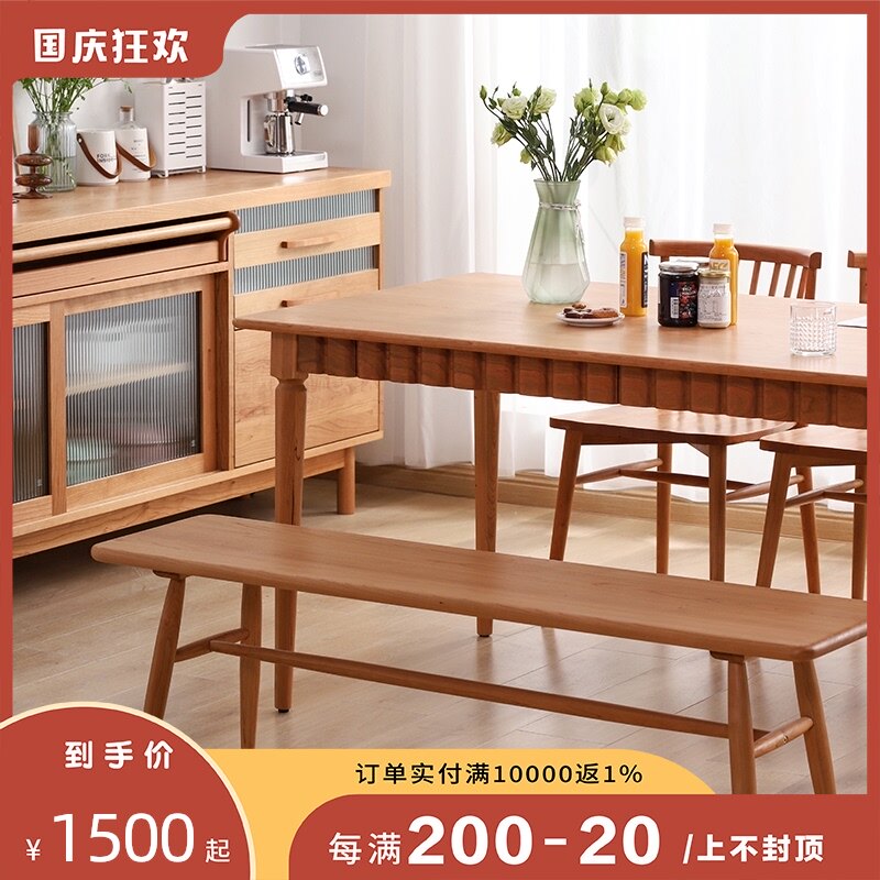 Nordic dining table home small apartment all solid wood furniture cherry wood table simple log dining table and chair combination drawer