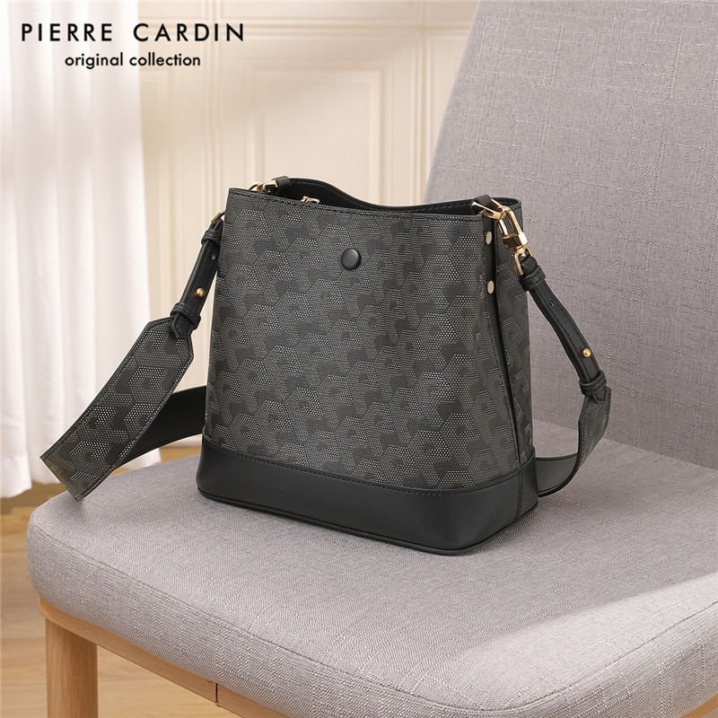 Pierre Carden retro bucket bag trendy PVC waterproof fashion women's bag large-capacity old flower bag shoulder messenger bag